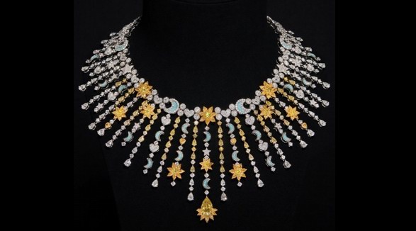 迪奥挚献Belle Dior高级珠宝系列,以翩跹流苏连结现实与梦境,将珠宝打造成美轮美奂的艺术诗篇。为致敬迪奥先生迷恋的占卜艺术,迪奥珠宝艺术总监维多利娅·德卡斯特兰(Victoire de Castellane)特别打造“日月星辰”(Soleil Céleste)系列的神秘寰宇。